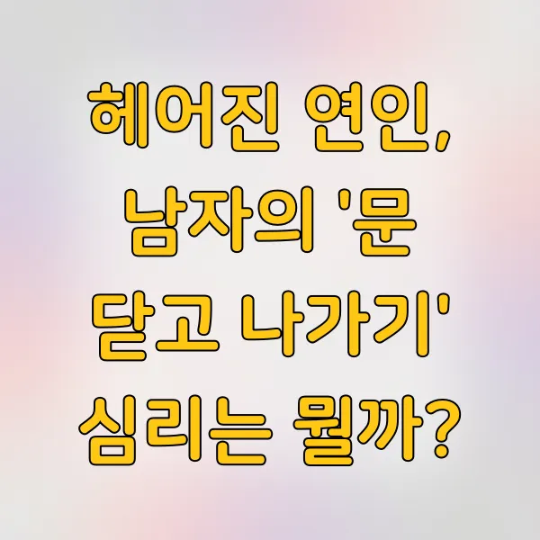이별 앞에서 남자는 왜 그렇게 매정하게 돌아서는 걸까요. 싸우고 뒤도 돌아보지 않고 문을 닫고 나가버리는 그 모습, 뒤에 남겨진 사람에게는 씻을 수 없는 상처를 남기기도 하죠. 대체 그 짧은 순간, 남자들의 머릿속에선 무슨 일이 벌어지는 걸까요. 단순히 감정적인 행동인지, 아니면 나름의 이유가 있는 건지 궁금하지 않으세요? 오늘은 그 '문 닫고 나가기'라는 행동 뒤에 숨겨진 남자들의 심리를 좀 더 깊이 들여다보려고 합니다.