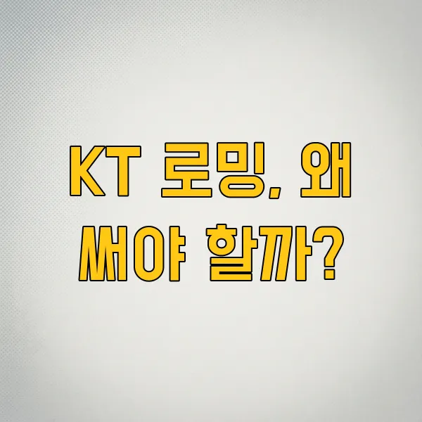 [일반 정보 안내] 본 콘텐츠는 KT 로밍 서비스 이용에 대한 일반적인 정보를 제공하며, 실제 요금 및 서비스 내용은 KT의 정책에 따라 변경될 수 있습니다. 정확한 최신 정보는 KT 공식 홈페이지 또는 고객센터를 통해 확인하시기 바랍니다.